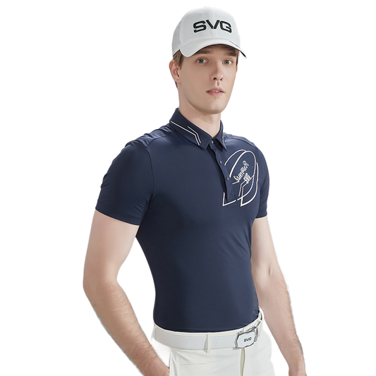 SVG Golf Men's Stand Collar Navy Short Sleeve T-Shirt