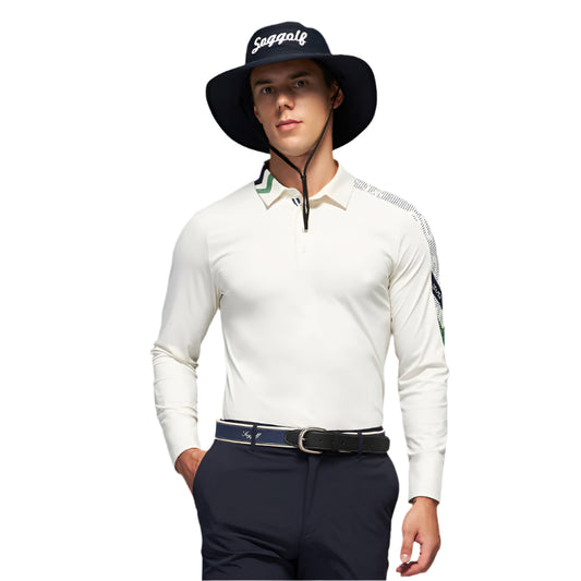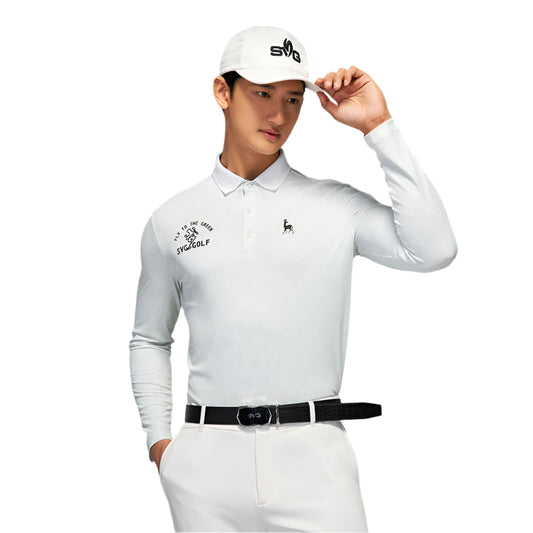 SVG Golf Men's Off-White Printed Long-Sleeved Polo Shirt