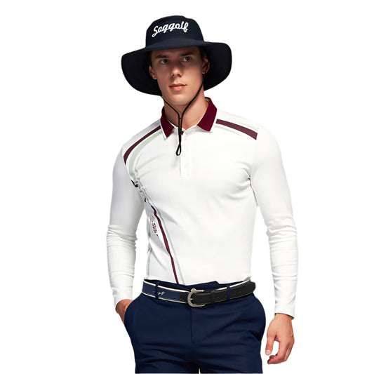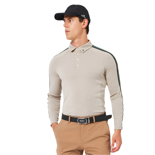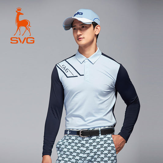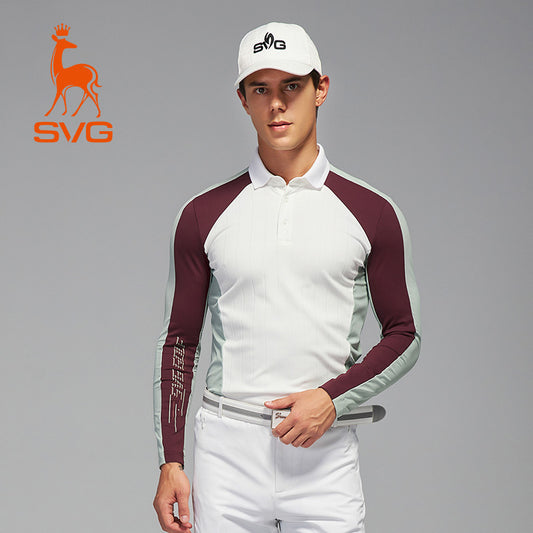 SVG Golf Men's Contrast Color Stitching Long Sleeve Polo Shirt