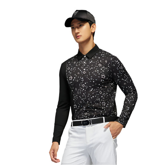 SVG Golf Men's Printed Long Sleeve Lapel Polo Shirt