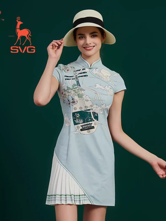 SVG Flying Pipa Chiffon Patchwork Cheongsam Golf Dress