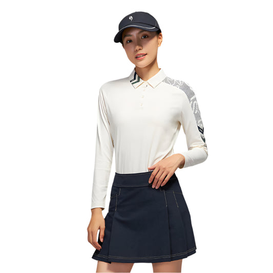 SVG Golf Women's Off-White Printed Long-Sleeved Polo Shirt