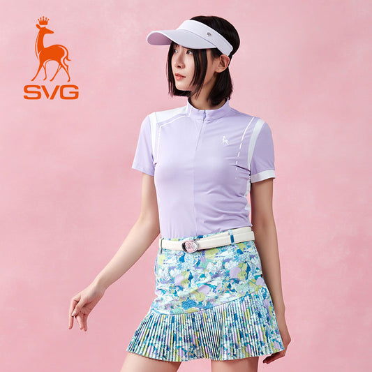 SVG Golf Women's Light Purple T-shirt Stand Collar