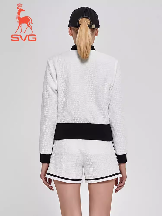 SVG Golf Black and White Warm Jacquard Knitted Jacket Top