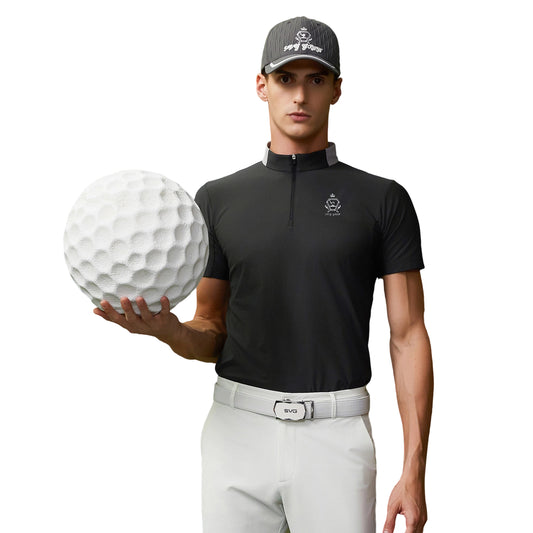 SVG Golf Men's Dark Grey Zip Stand Collar T-Shirt