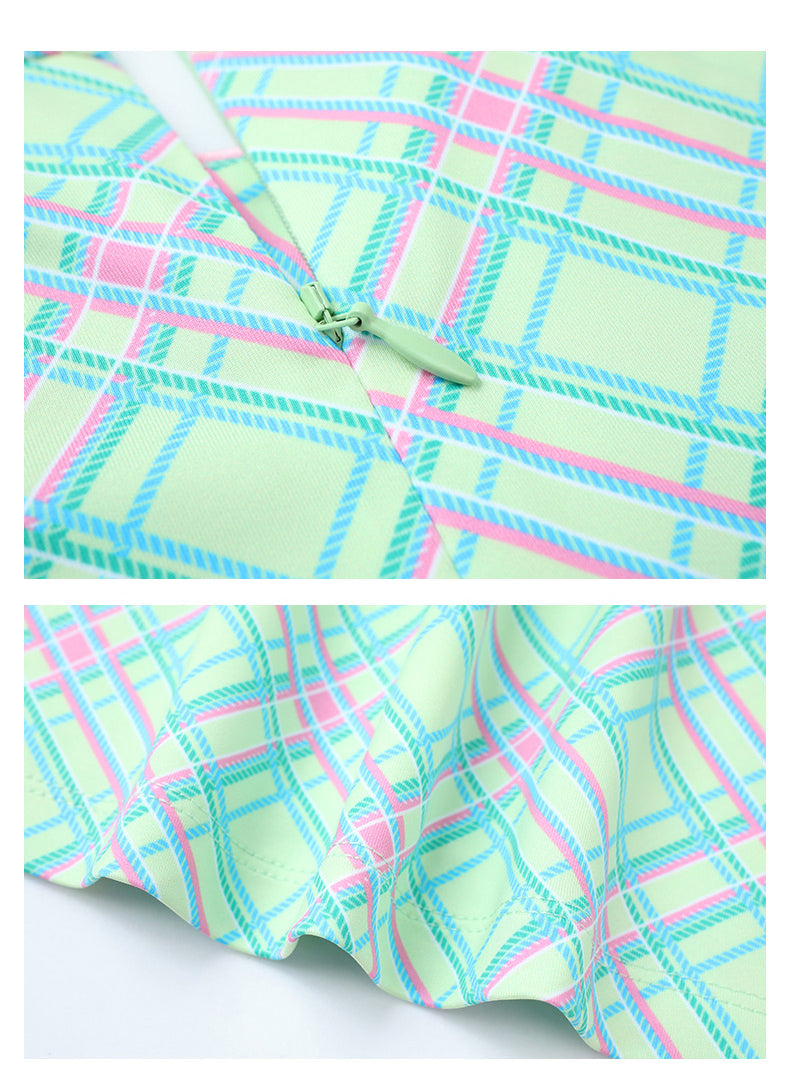 Crafted from a moisture-absorbing and quick-drying smooth knitted fabric, this garment ensures comfort during wear. The relaxed pink and green, or black and white grid pattern follows the popular trend of the summer season, adding a touch of youthful vibrancy.
