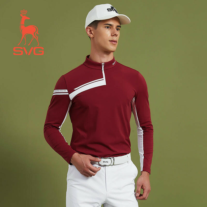 SVG Golf Fall Winter Men's Red Stitched Long Sleeved T-Shirt Zipper Stand Collar Jacket