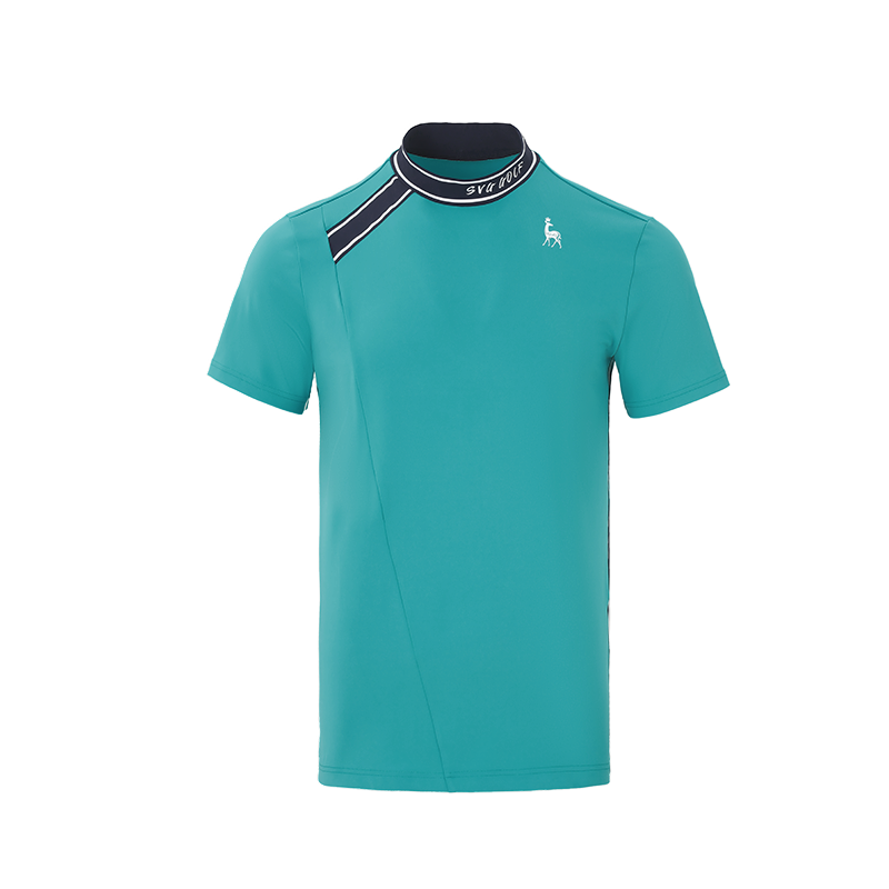 Crafted from the soft and moisture-absorbing T018 fabric, this piece boasts a trendy peacock color complemented by navy blue detailing. The sporty, simple, and classic design ensures both style and comfort in wear