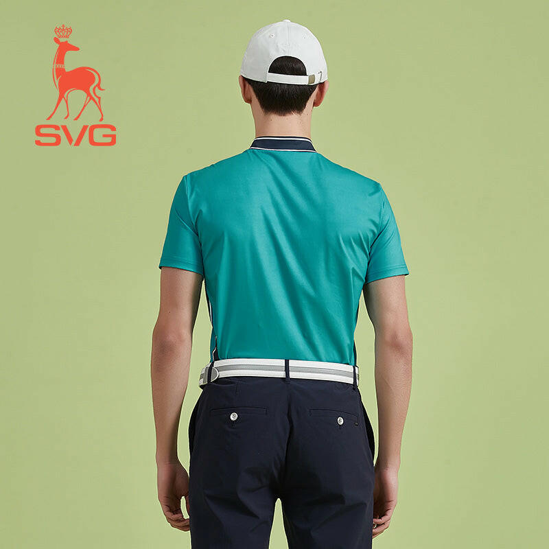 SVG Golf Men's Peacock Blue Printed Short-sleeved Stand Collar T-shirt