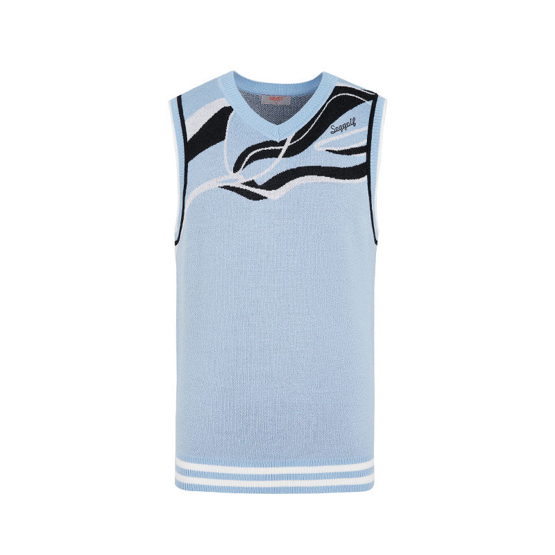 Features: This blue sweater vest is fresh and elegant, with black and white jacquard lines, which is smart and beautiful.