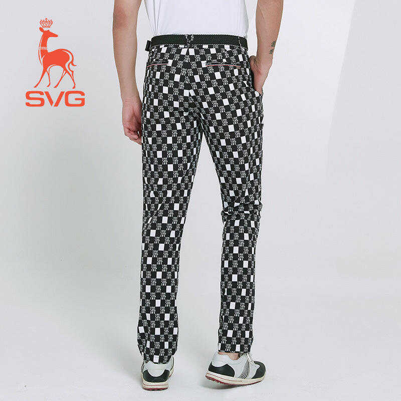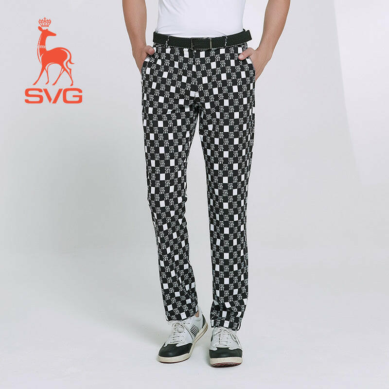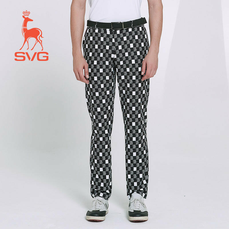 The SVG Golf Plaid Print Pants uses moisture absorption quick-drying fabric.Black and white checkerboard pattern with red contrast detail, atmosphere fashion