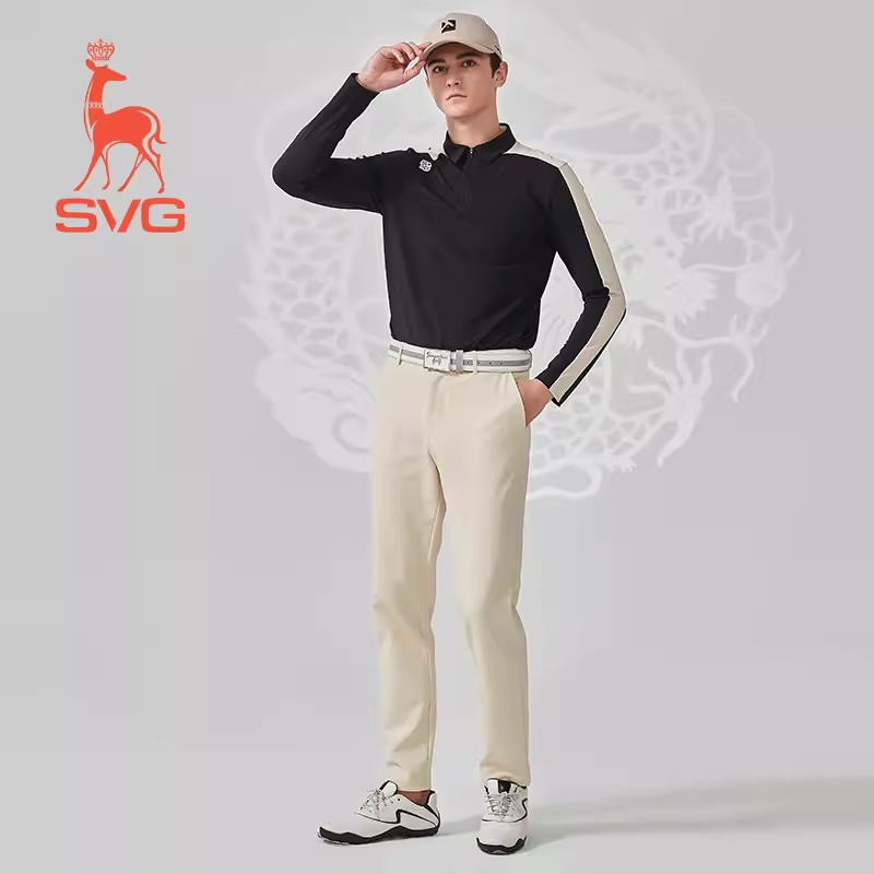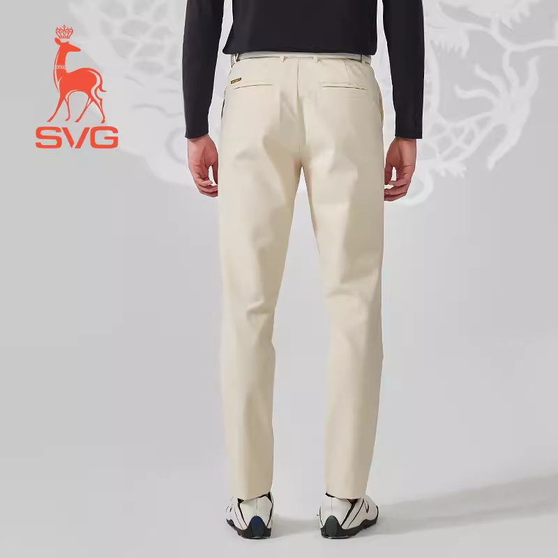 Discover the ultimate in style and comfort with SVG Men's Beige Stretch Slim Straight Pants. These four-way stretch trousers boast meticulous three-dimensional tailoring, ensuring a tailored fit that's both inclusive and stylish. The inclusive waistband adds to the comfort, while the 9-point length exudes contemporary sophistication. Elevate your wardrobe with these comfortable and fashion-forward trousers from SVG Golf.